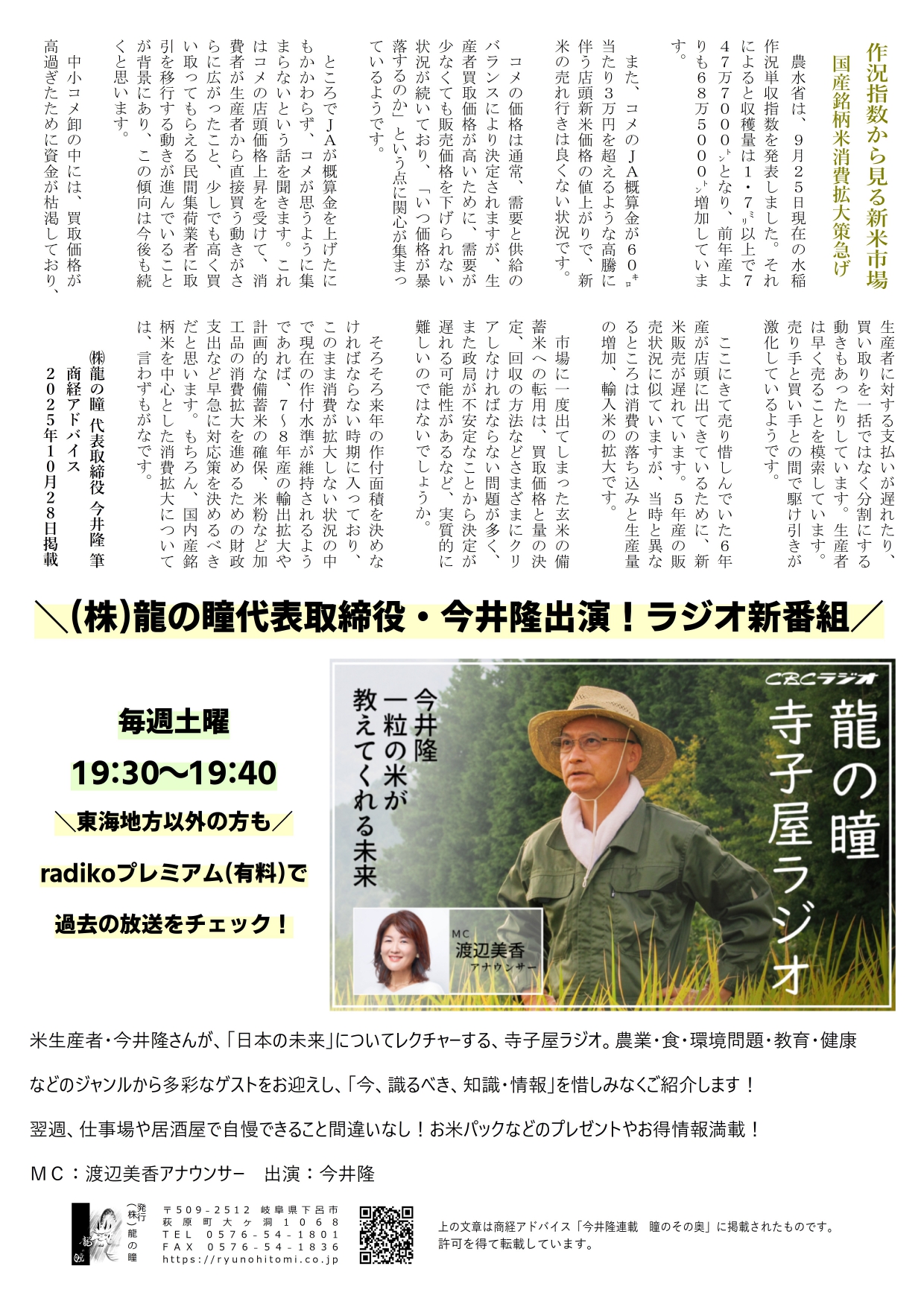 ・CBCラジオで代表取締役・今井隆の番組がスタート!